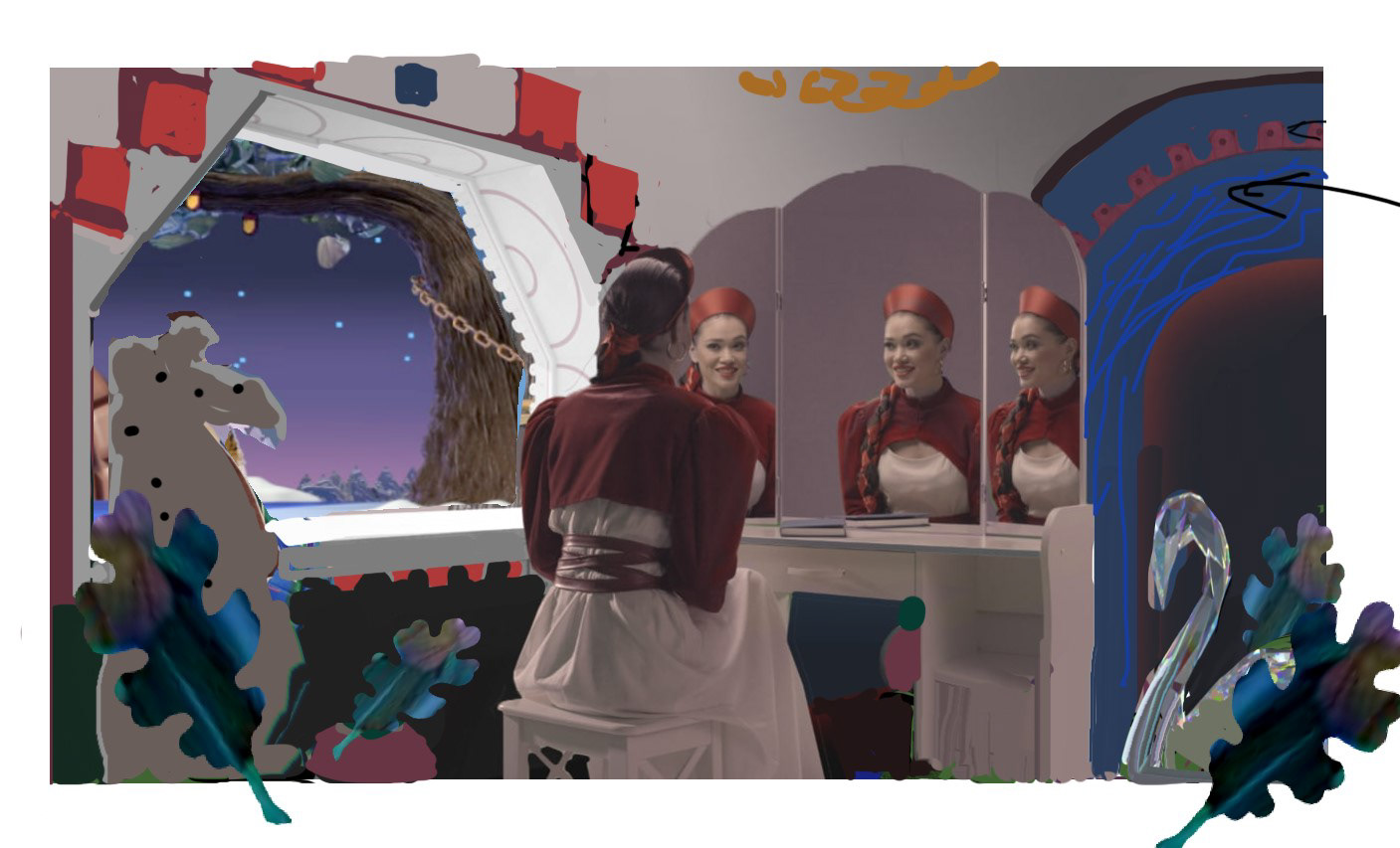We have created a look for modern fairytale world with strong absurd overtones, mixing traditinal and modern motives.